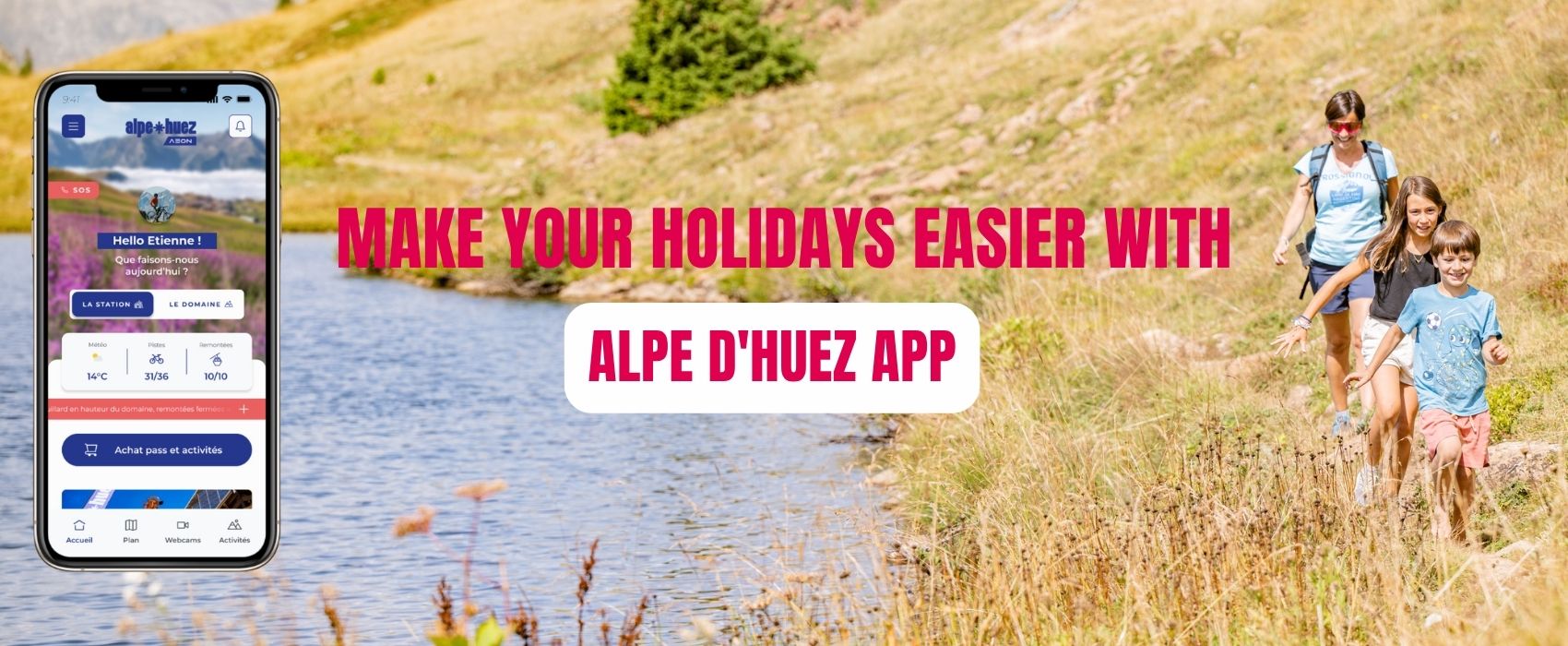 The Alpe d’Huez mobile app supports you every step of your stay, making it easy to enjoy the mountains to the fullest. Check real-time weather updates, browse the events programme, receive personalised recommendations, and access live panoramic views from the summits. You can also find your souvenir photos and all the essential information needed to plan your activities. Intuitive and user-friendly, the app becomes your essential guide to making the most of the Alpe d’Huez area, both in summer and winter.