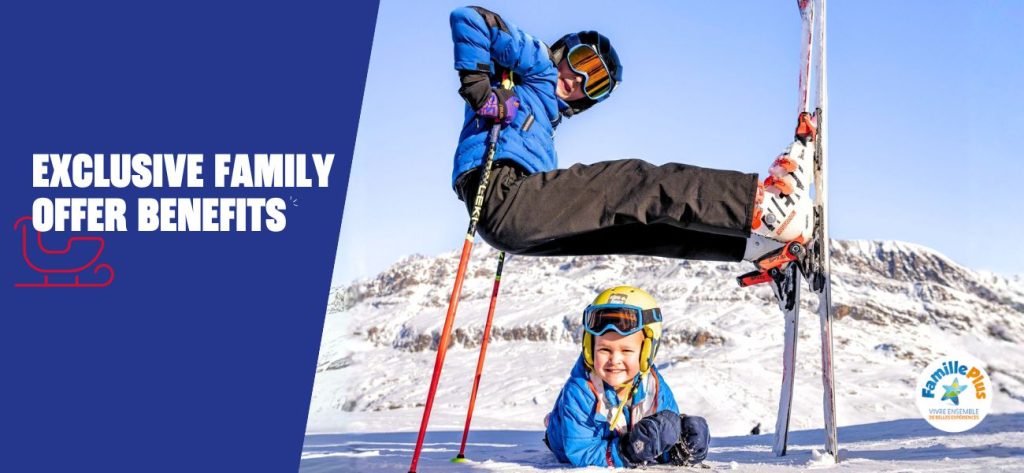 Ski together at the child rate: this offer is available for families of at least four people, with up to two adults (aged 23 to 71) and at least two children (aged 5 to 22). It is open to traditional families, blended families, and those including grandparents.